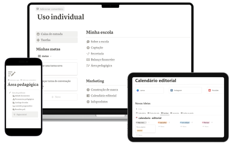 Com eles, o Notion vira o motor que move a sua escola pra frente.